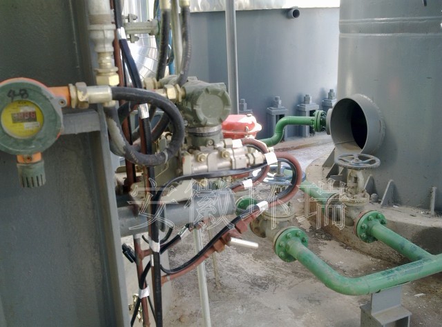 壓力變送器液位計常應(yīng)氣候溫度過低,造成堵塞現(xiàn)象,需要電伴熱防凍,渝豐化工要求其冬季維持溫度為5--10℃,并且要求電伴熱帶具有防爆防腐功能。安徽環(huán)瑞提供ZRDHR-PF46滿足客戶對使用場合及維持溫度要求,其最高表面溫度為70℃,耐溫可達200℃。可保證維持溫度的情況下,不會出現(xiàn)溫度過高的情況,更加經(jīng)濟安全,而針對現(xiàn)場細長狹窄的地方自限溫電熱帶可實現(xiàn)交叉纏繞,解決局部伴熱的問題。以下為現(xiàn)場施工安裝圖: