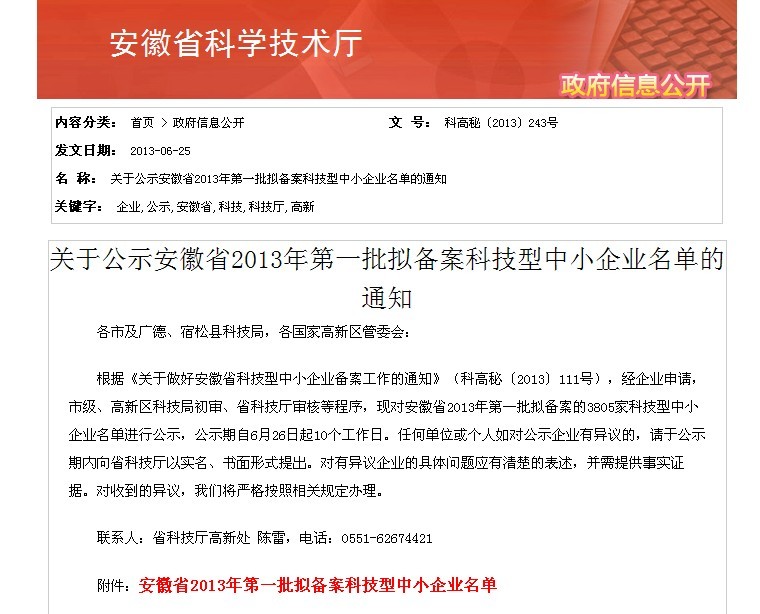 根據(jù)《關(guān)于做好安徽省科技型中小企業(yè)備案工作的通知》(科高秘〔2013〕111號(hào)),經(jīng)企業(yè)申請,市級(jí)、高新區(qū)科技局初審、省科技廳審核等程序,安徽環(huán)瑞入選2013年第一批備案科技型中小企業(yè)。