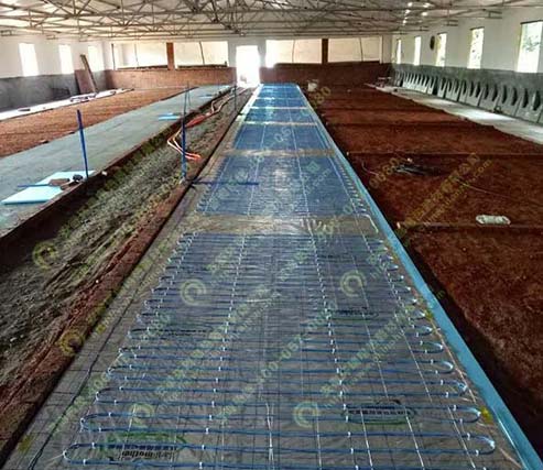 發(fā)熱電纜養(yǎng)殖保溫系統(tǒng)是將220V電源連接埋置在混凝土中的發(fā)熱電纜,發(fā)熱電纜發(fā)熱,將熱量傳至混凝土中并儲(chǔ)熱,然后熱量由混凝土通過熱輻射的形式向上緩慢均勻釋放,從而達(dá)到下暖上涼的采暖效果。