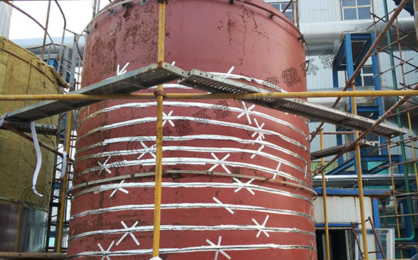 罐體在電伴熱保溫中是非常常見的,像儲油罐、儲氣罐等,那么罐體使用電伴熱帶如何安裝呢,有客戶咨詢加油站零號柴油罐怎么安裝,其實是和其它場合罐體安裝方法是一樣的,但是選擇電伴熱帶型號的時候需要注意,要選擇防爆防腐型的。安裝的時候一般是兩種安裝方式,一種是由下至上螺旋式纏繞,保持適當?shù)睦p繞間距;另一種是由左向右,上下迂回式安裝,并保持均等的間距。然而儲罐的管壁面積大,比較陡峭,貼敷電伴熱帶不是很容易,所以在安裝的時候我們要很好的固定住電伴熱帶,將其完全貼敷于罐壁。